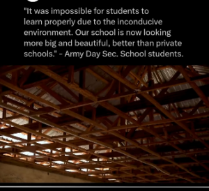 For years, Army Day Secondary School — like many public schools across Nigeria — struggled with dilapidated classrooms, poor facilities, and an environment that made focused learning difficult. Students and teachers often complained that the physical conditions dampened morale and hindered academic performance.